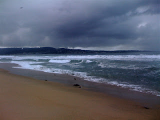 With that much dark water booming at the shore, it's simple to imagine a tsunami looming on the horizon and having to run for your life. Or to imagine large sea monsters rising up and making awful noises while they lick their chops. Winter cold and uncompromising forces of water and wind were taking no prisoners, from the look of it all.